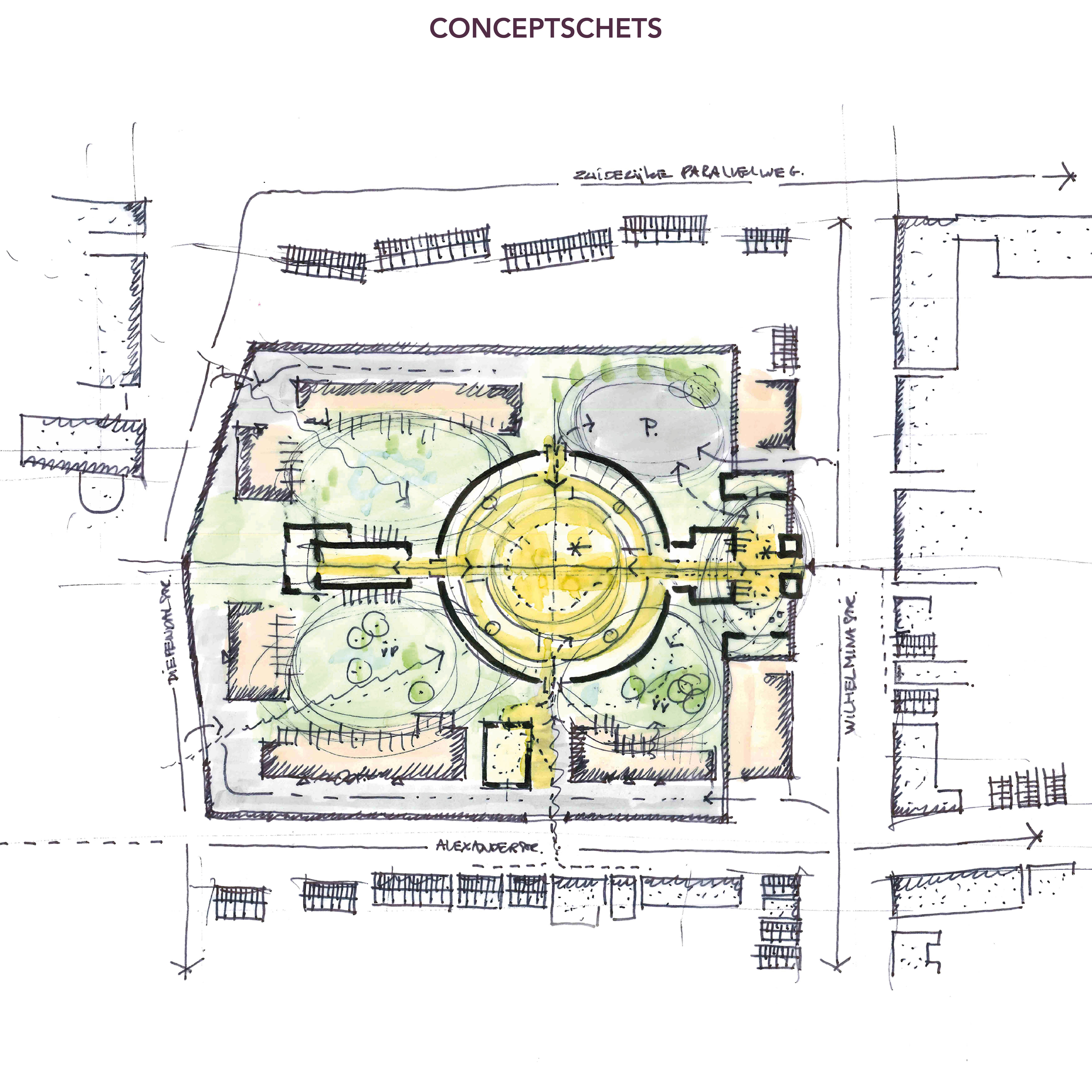 Het gevangeniscomplex wordt getransformeerd naar een open stedelijk gebied. De locatie wordt aangesloten op de wijkstructuur en voorziet in een brede mix van functies waarbij het wonen en de hotelfunctie aan een openbare tuin centraal staan.