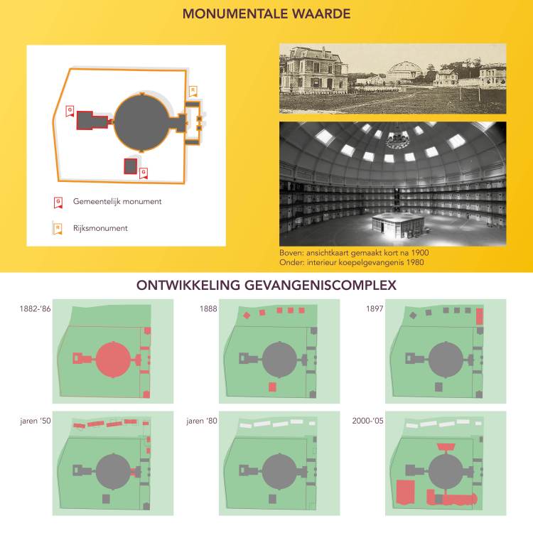 Het 19e-eeuwse gevangeniscomplex is van grote cultuurhistorische waarde als bijzondere uitdrukking van een culturele ontwikkeling, namelijk de tendens tot rationalisering en disciplinering van het maatschappelijk leven en dus ook van het gevangeniswezen. De drie Nederlandse koepelgevangenissen (Arnhem 1886, Breda 1886, Haarlem 1901) kunnen beschouwd worden als de meest bijzondere resultaten van de laat 19de-eeuwse opvattingen over de opsluiting en heropvoeding van misdadigers. De koepelgevangenissen vormen in deze ontwikkeling een hoogtepunt en moeten beschouwd worden als de meest radicale ruimtelijke vertaling van deze ideologische en organisatorische principes.