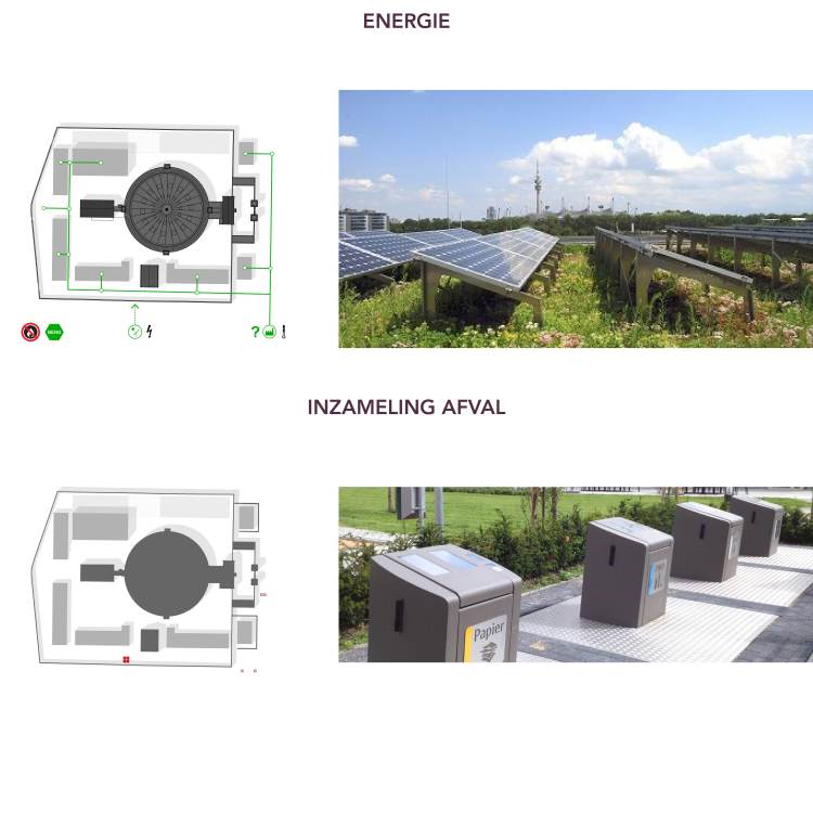 Inzameling van huisafval geschiedt voor de woningen binnen de muur op een centraal punt in de parkeerstrook nabij de Kapel. Er is rekening gehouden met 1 à 2 ondergrondse containers voor restafval en (indien nodig) een tweetal containers voor PMD en OPK. De woningen in de wachters aan de Wilhelminastraat kunnen gebruik maken van de reeds aanwezige containers in deze straat. Alle afvalinzameling geschiedt ondergronds, er komen geen mini containers. De afvalinzameling van het hotel geschiedt op eigen terrein.