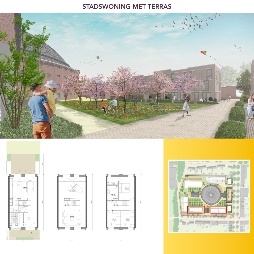 De stadswoningen met terras grenzen aan de binnentuin. Elke woning heeft zicht op de Koepel. De woningen hebben drie bouwlagen.